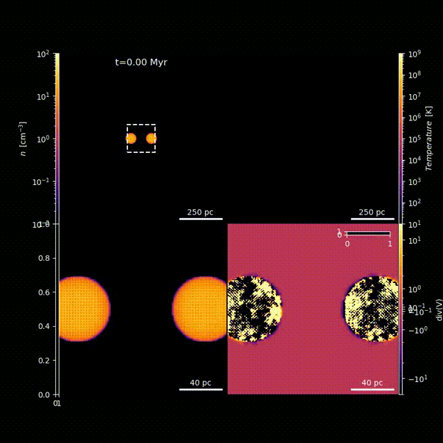 I have implemented a pre-supernova binary yield model into the hydrodynamical code AREPO-RIGEL, carried out a suite of giant molecular cloud simulations with varying initial masses and radii, and analyzed the chemical and dynamical evolution of second-generation material. These simulations revealed a fundamental “time budget” problem: the mismatch between the timing of pollutant release, mixing, and star formation strongly limits the 2P/1P ratio, reaching at most ~6% in isolated GMCs. This finding suggests that isolated star formation and stellar feedback cannot reproduce the observed MPs, motivating us to propose cloud–cloud collisions or shock-driven star formation as promising alternative scenarios. Our work also proved that MP formation is not a simple linear mixing problem, but a complex one linked to the GMC’s energy cycle, phase transitions, and turbulent evolution. This work is supervised by Hui Li of Tsinghua University and Baitian Tang, Long Wang and Liubin Pan of Sun Yat-sen University. For more details please click "in Prep." button below.